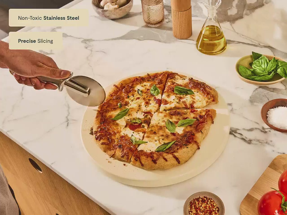 Crafted with non-toxic stainless steel, our premium Pizza Cutter combines durability and ease of use to make slicing through pizza (or quesadillas) a delicious art form. With an ergonomic design and beautiful weight, the best pizza argument may endure—but the best Pizza Cutter debate ends here. Blade sleeve for safe storage included.